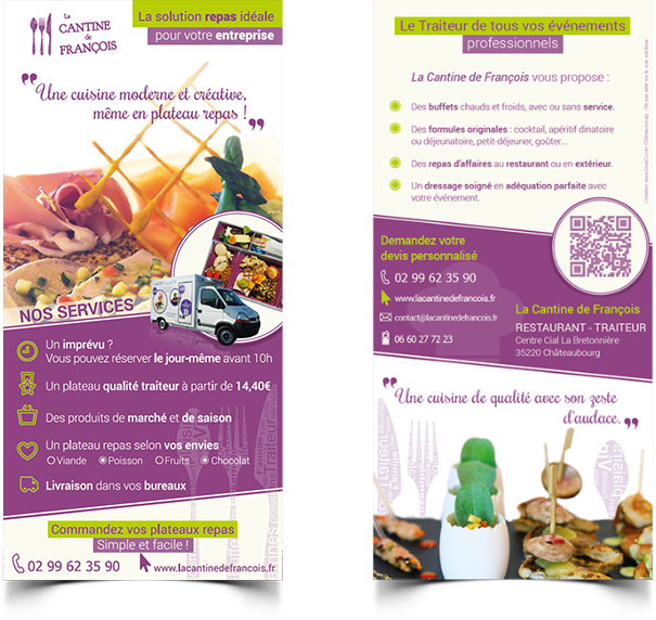 Projet professionnel : dans le cadre de mon stage au sein de l'agence blue2i, j'ai eu l'occasion de réaliser un flyer pour un traiteur et restaurateur castelbourgeois.