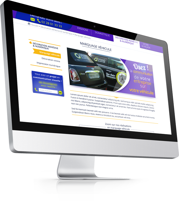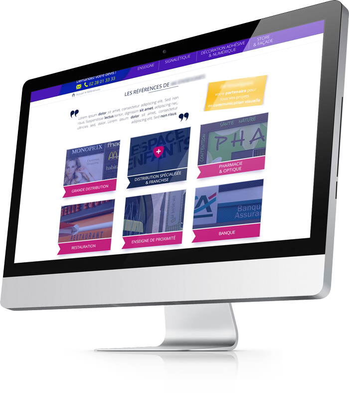 Projet professionnel : dans le cadre de mon stage au sein de l'agence blue2i, j'ai eu a réaliser un webdesign pour une entreprise spécialisée dans la fabrication d'enseignes et de signalétique.